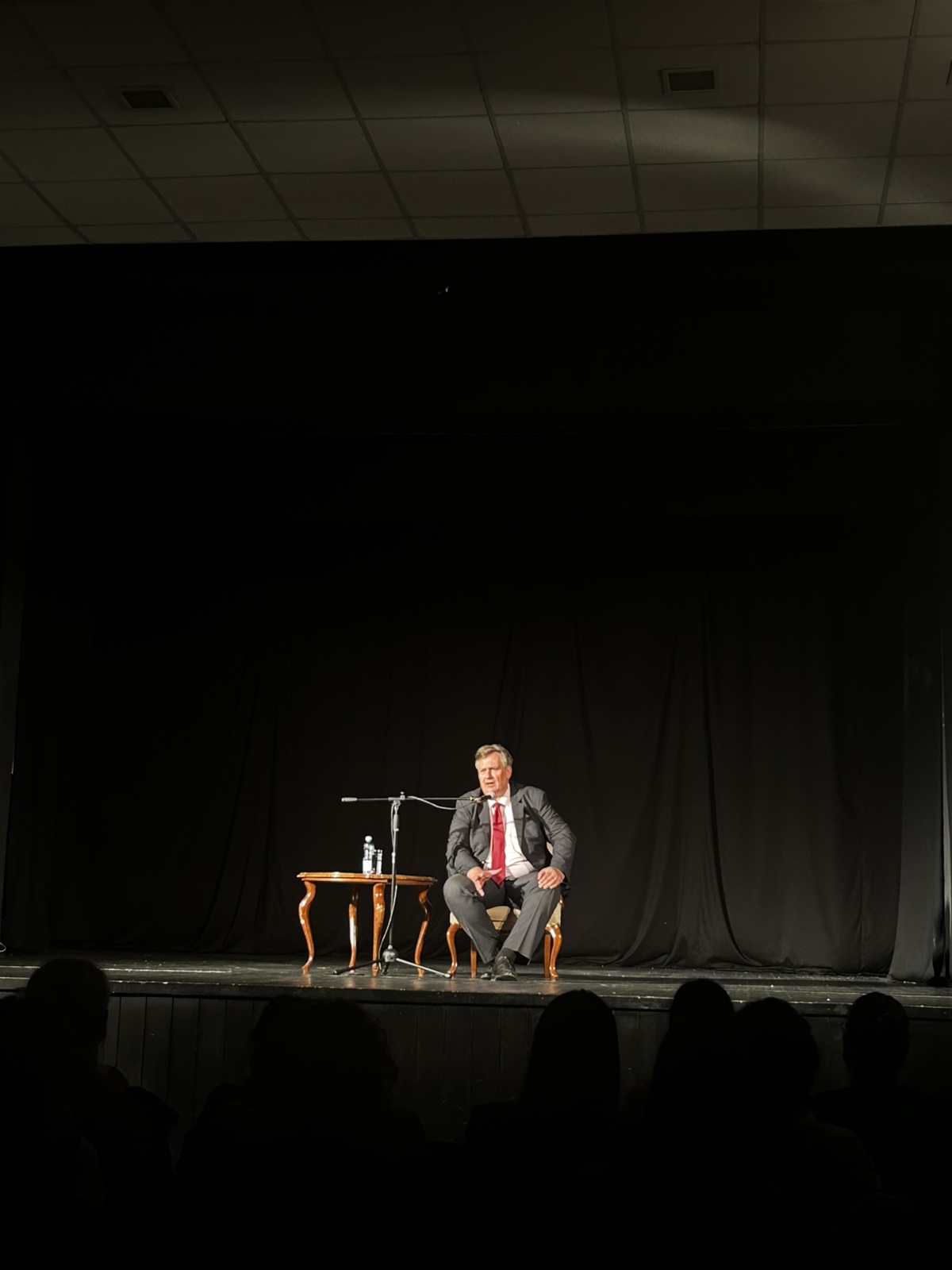 📍U tišini scene, Dunić je govorio odabrane odlomke iz Dučićevog djela „Blago cara Radovana“, osvetljavajući vječite teme sreće i ljubavi – onako kako ih samo Dučić zna, a Dunić osjeća.