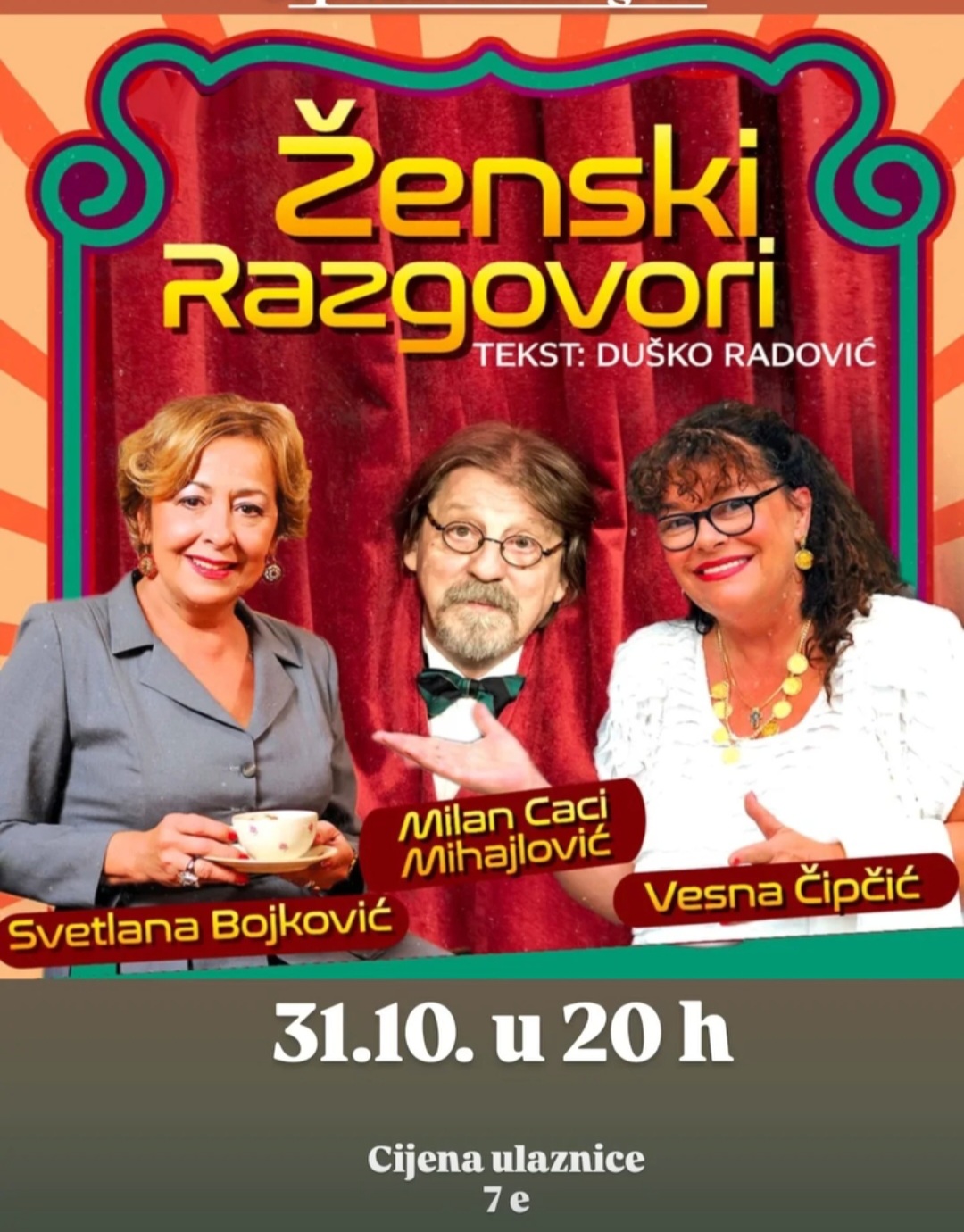📍Na sceni Centra za kulturu Danilovgrad u petak, 31. oktobra u 20:00 časova, biće izvedena komedija „Ženski razgovori“, nastala po istoimenom tekstu Duška Radovića.