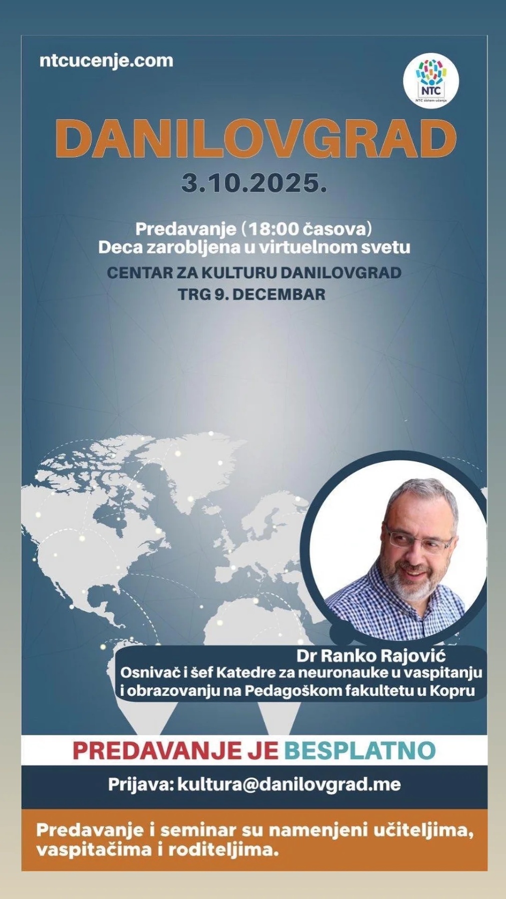 📢U okviru obilježavanja Dječije nedjelje, Centar za kulturu Danilovgrad ugostiće dr Ranka Rajovića.