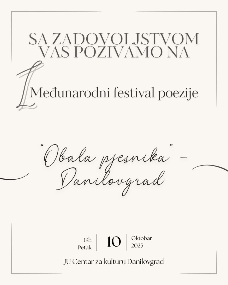 U petak, 10. oktobra sa početkom u 19.00 časova, u danilovgradskom Centru za kulturu biće održan prvi Međunarodni festival poezije… Read more